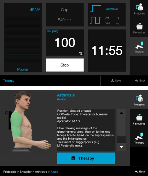 - Érintőkijelző + forgókapcsolók – terápia közben is könnyen szabályozhatók a paraméterek